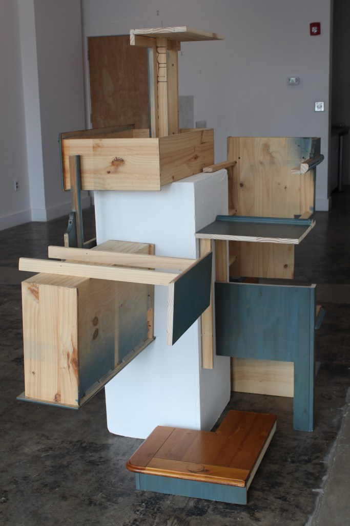 Over time our relationships with people and objects change, often this happens imperceptibly. Here a particular object from childhood has been dissected and turned into a pixelated amalgam of thought and experience oriented in space. The moments of wear and tear from its past as a protective functional thing that housed secrets as well as clothes is exposed as the dresser now bears all to the viewer.