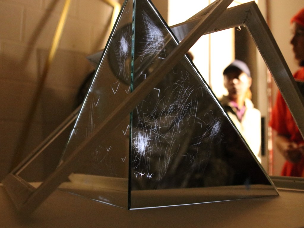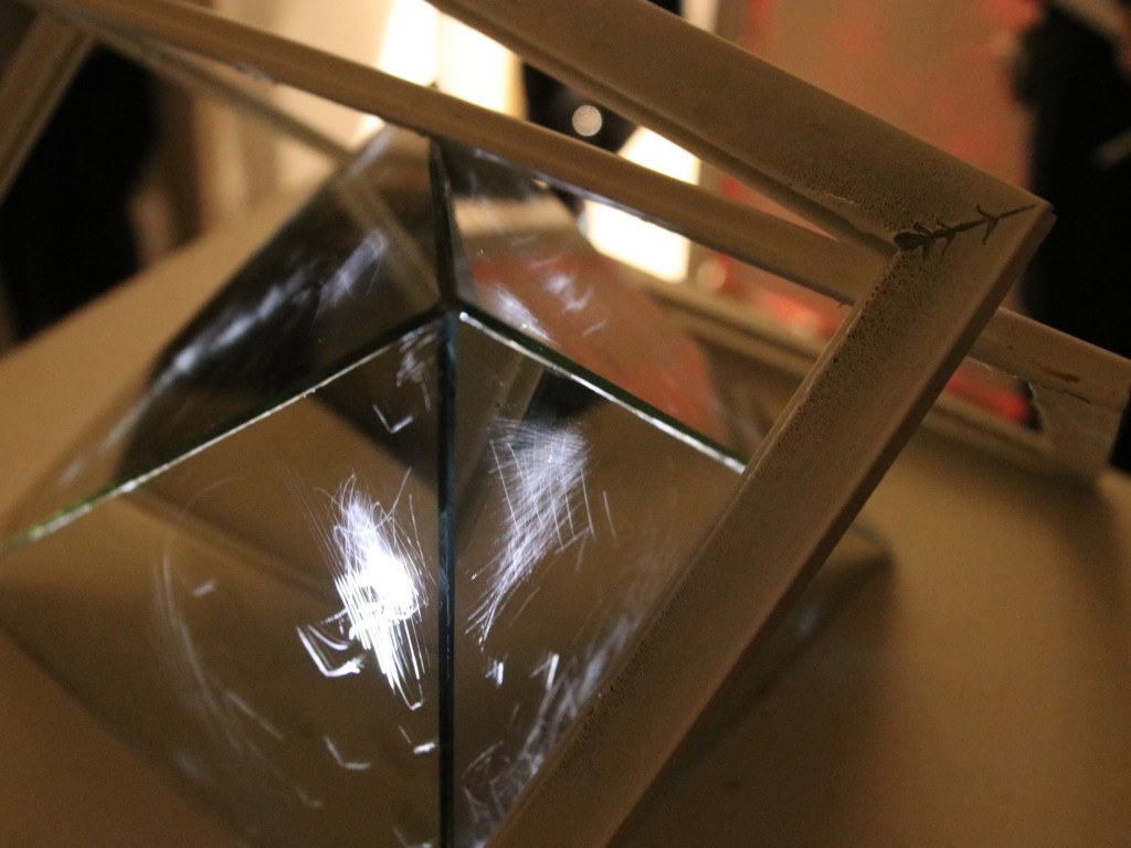 The frames also act as a container for this illuminated fracture. They prevent further contamination and the restraint invites closer inspection of the shapes and the curious shining pattern.